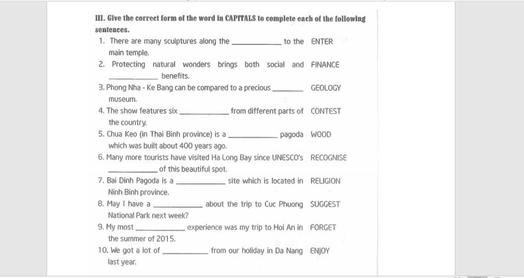 II. Give the correct form of the word in CAPITALS to complete each of the following sentences.