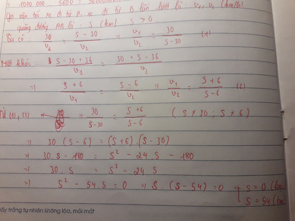 Thay $S=54$ vào $(2)$ ta được : $\frac{v_{1}}{v_{2}}=\frac{5}{4}$
