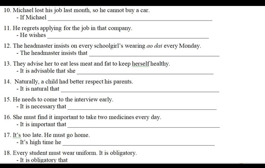 `10.` If Michael hadn't lost his job last month, he could buy a car.