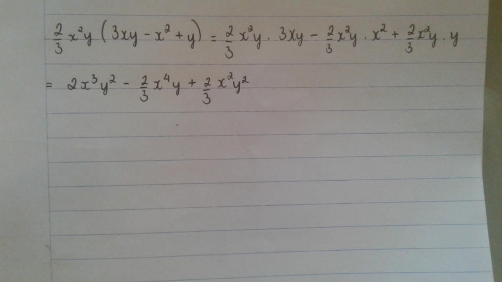 $=\frac{2}{3}x^2y.3xy-\frac{2}{3}x^2y.x^2+\frac{2}{3}x^2y.y$