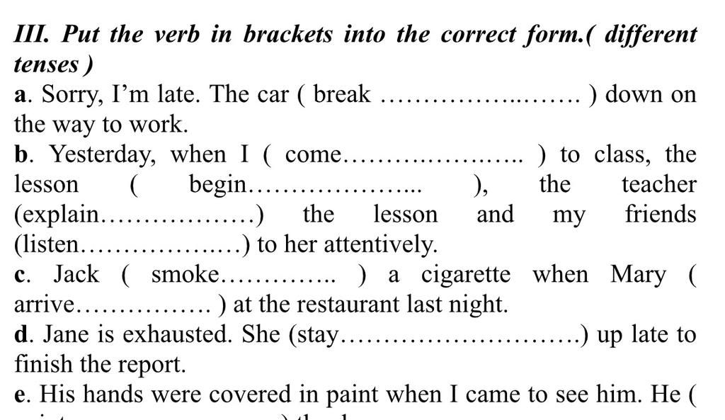 Hđ bài học bắt đầu xảy ra trước khi tôi vào lớp→chia thì QKHT