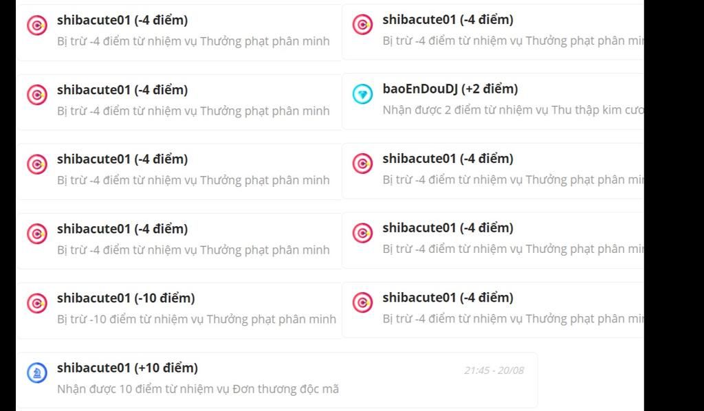 Bị trừ -4 điểm từ nhiệm vụ Thưởng phạt phân minh