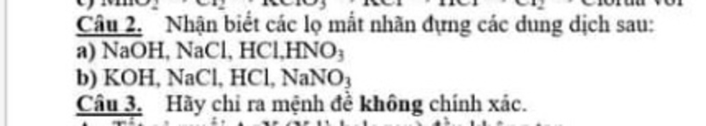 Ban đầu cho quỳ tím, NaOH hóa xanh quỳ, HNO3 vs HCl làm đỏ quỳ, NaCl ko làm đổi màu quỳ tím