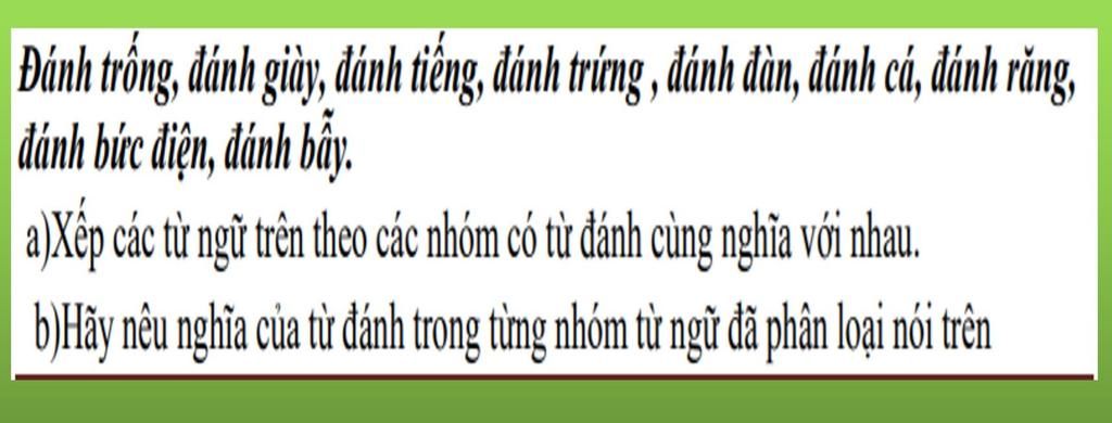 - nhóm 1: đánh trống, đánh đàn ( phát ra âm thanh )