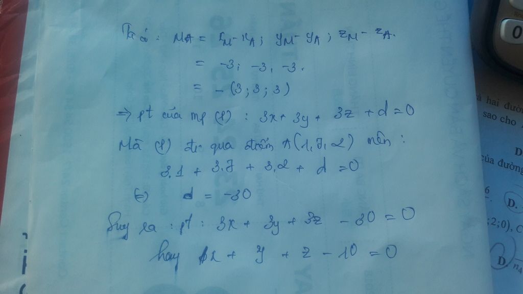 Gọi mặt phẳng đi qua $A(1, 7,2)$ có dạng: