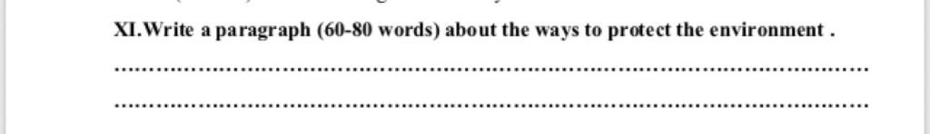 There are so many ways to protect our environment . I do the following to protect our enviroment . Firstly , I plant many green trees. Secondly , I talk to teacher at the school about putting recycling bins in every classroom. Next , I reuse your plastic bags and recyclable things such as clother, bottle , paper ,....Finally , I reduce emissions from cars by walking cryling . If we do them , we will comtribute to make a greener world .