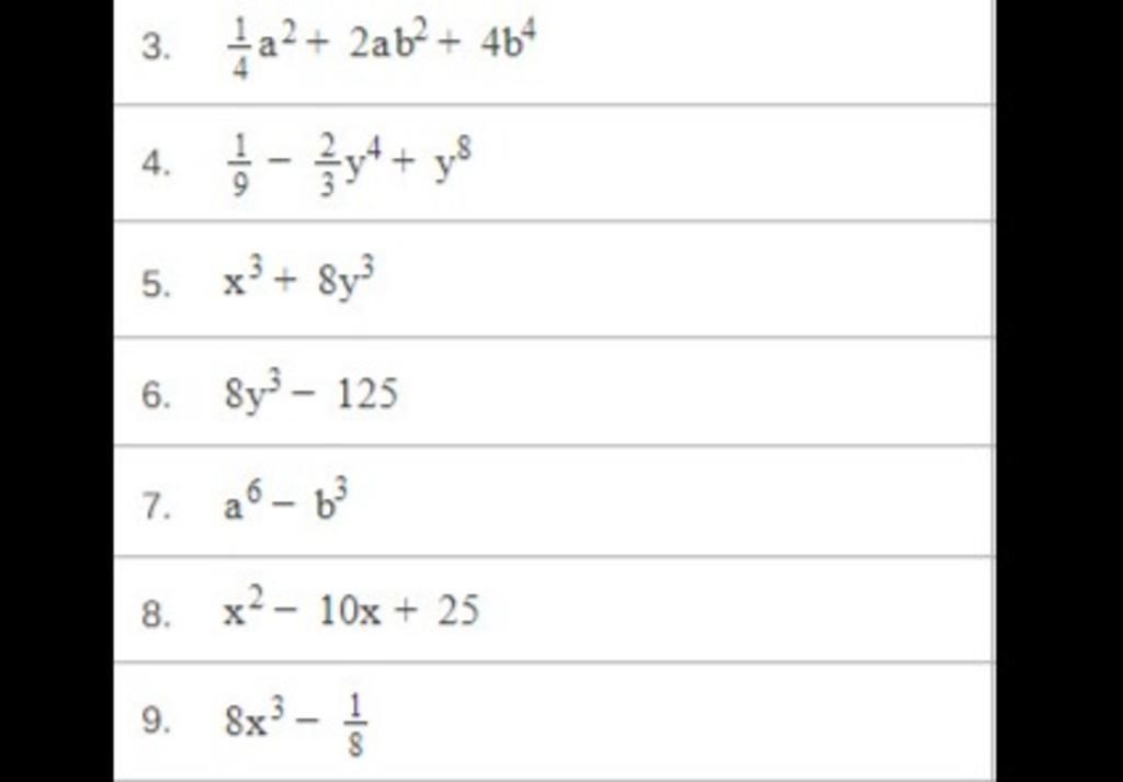 `9.` `8x^3-1/8`