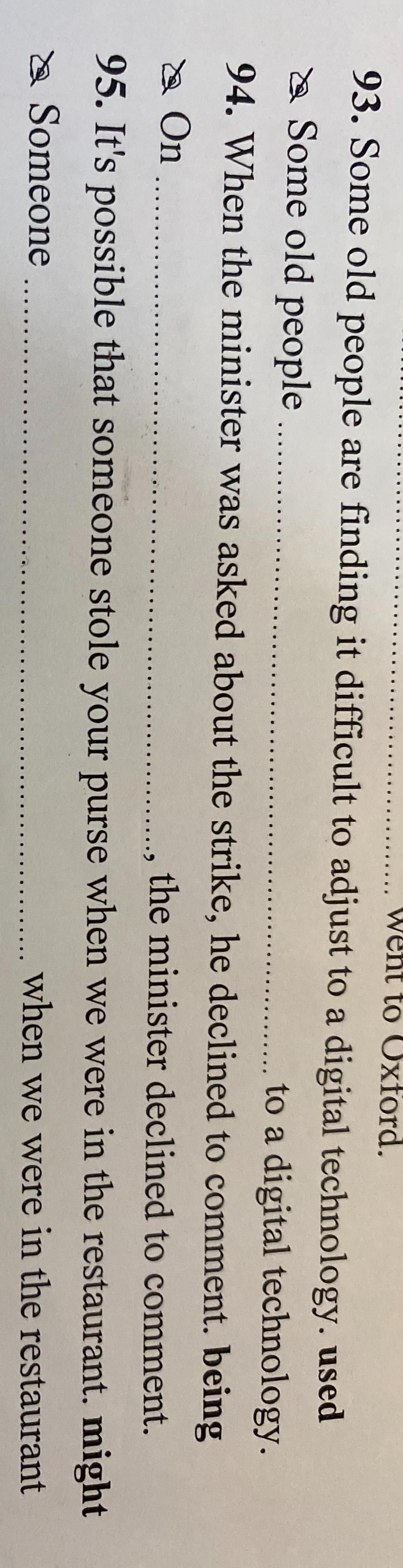 $93.$ Some old people can't get used to digital technology.