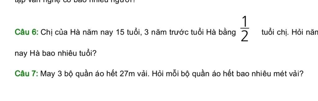$\text{*Khi tính tuổi Hà vào ba năm trước, ta có thể lấy:}$ $12$ x `1/2` $=$ $6$.