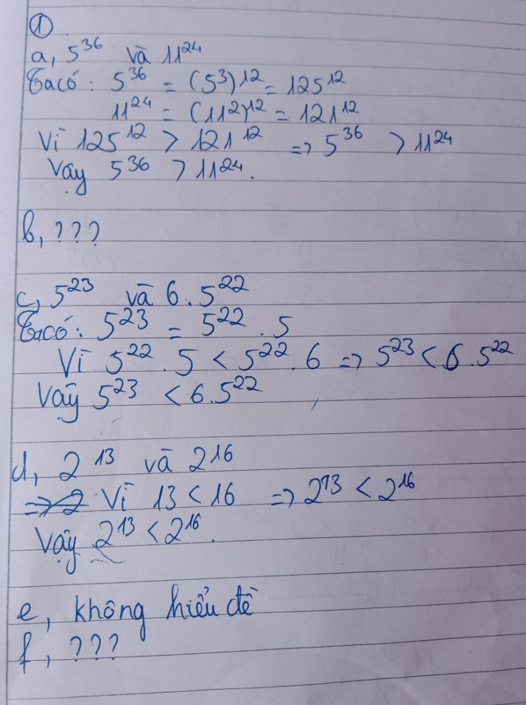 VÌ $125 > 121$ nên $125^{12} > 121^{12}$ $⇔$ $5^{36} > 11^{24}$.