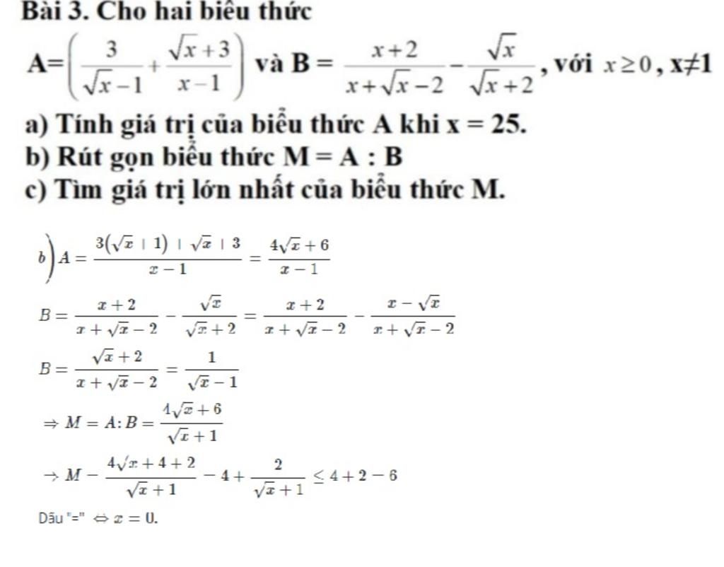 `x>=0->\sqrt{x}>=0->\sqrt{x}+1>=1->2/(\sqrt{x}+1)>=2->4+2/(\sqrt{x}+1)<=4+2=6->M<=6`