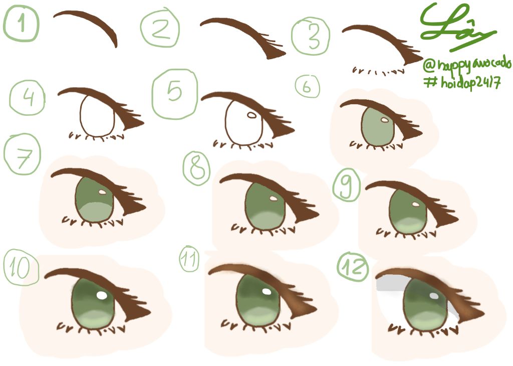 9 à lộn......7)tô màu đậm hơn lên trên mắt (tô 1/3 hoi nhó*tùy vào sở thích mỗi ng*)