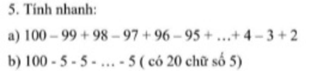 b,100 - 5 - 5 - . . . - 5 (Có 20 chữ số 5)