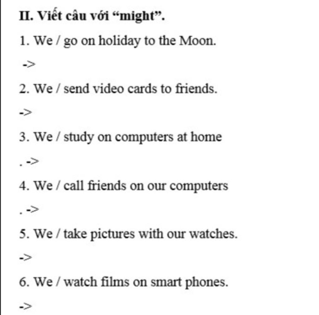 II.VIết câu với might :