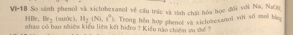 - Hỗn hợp phenol và xiclohexanol có 4 kiểu liên kết hidro: