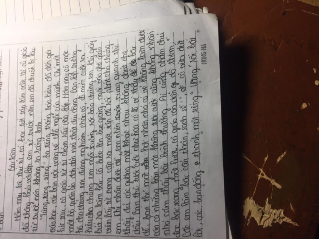 Bài viết văn hôm đó em cũng cảm thấy tương đối hài lòng vì mình đã viết được những đoạn văn, câu văn thật ưng ý, thể hiện được ý tưởng của mình. Em thích những giờ tập làm văn bởi lúc ấy là lúc em được thể hiện cảm xúc, ý tưởng của mình.