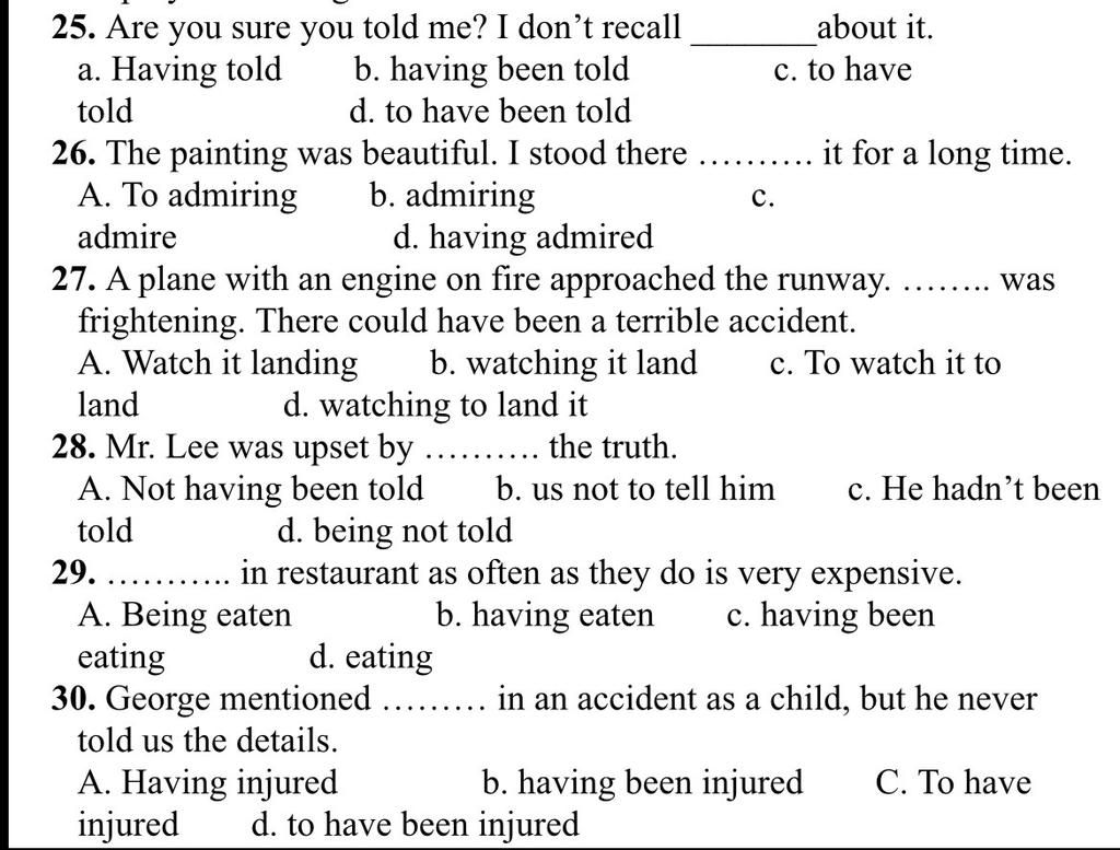 25C recall to(v) gợi nhắc về, sự vc trong câu này có tính kéo dài từ QK>HT nên có kèm HTHT nữa
