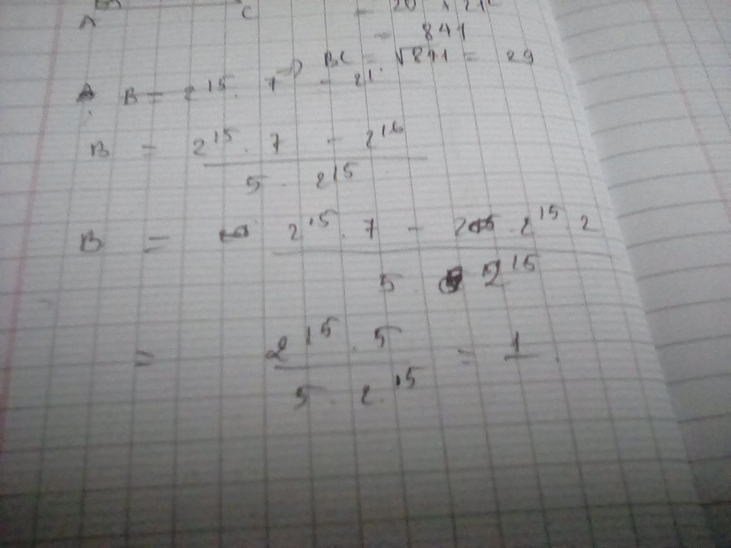 $1.B=\dfrac{2^{15}.7-2^{16}}{5.2^{15}}$