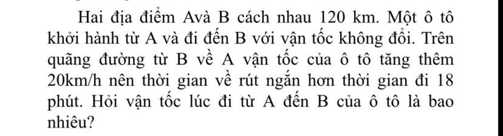 phút. Hỏi vận tốc lúc đi từ A đến B của ô tô là bao nhiêu?