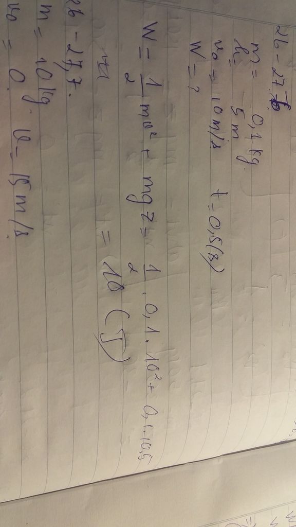 \(W = \frac{1}{2}m{v^2} + mgh = \frac{1}{2}.0,{1.5^2} + 0,1.10.8,75 = 10J\)