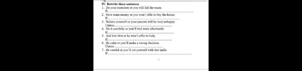 `3.` Unless you behave yourself, your parents will be very unhappy.