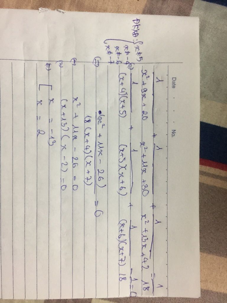 `⇔1/(x²+4x+5x+20)+1/(x²+5x+6x+30)+1/(x²+6x+7x+42)=1/18`