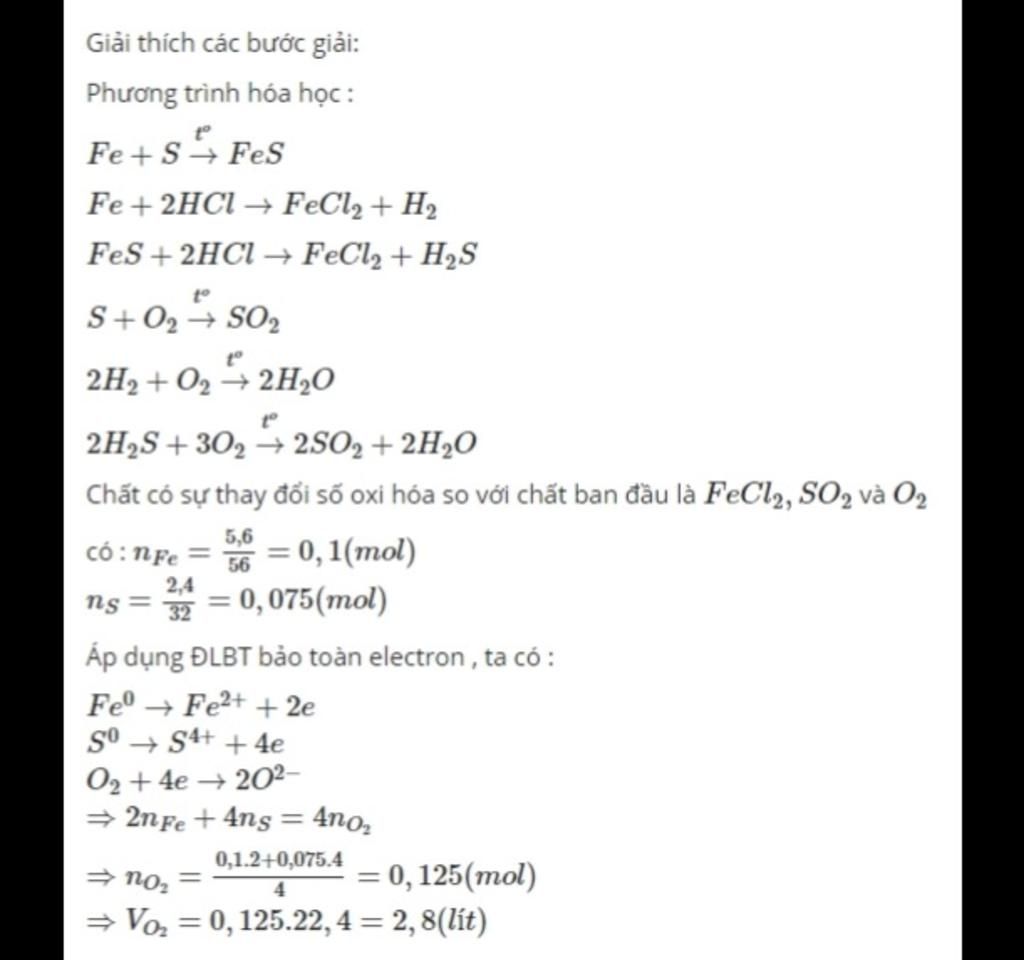 Phản ứng ko hoàn toàn thì cả 2 chất Fe, S đều dư. Khi tính toán thì giả sử S hết trước ( vì n Fe > nS)