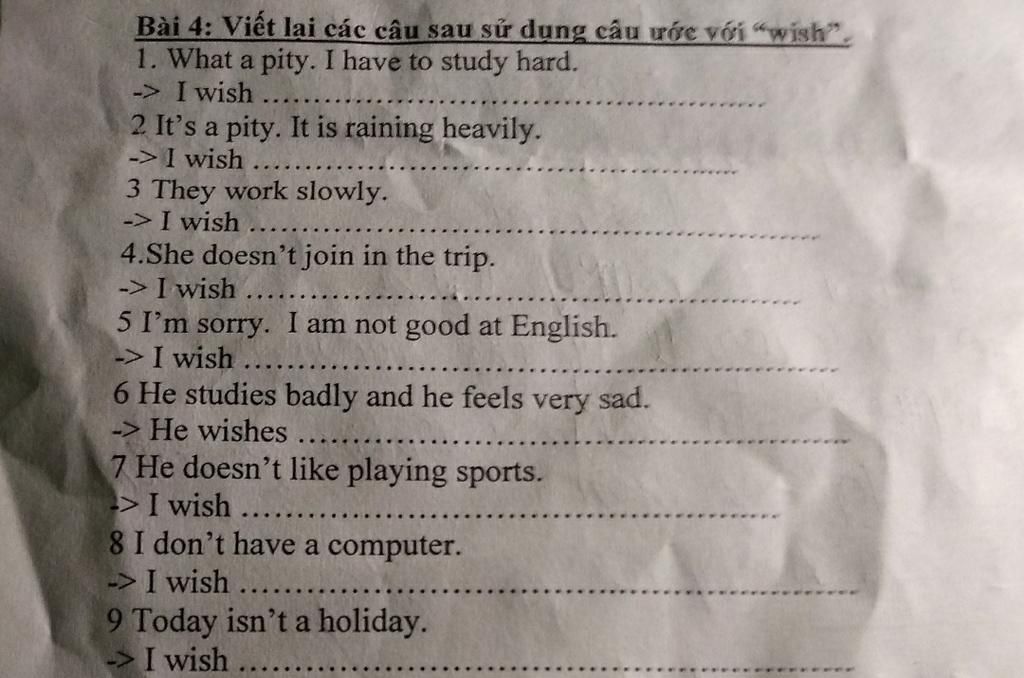 *Cấu trúc cầu điều ước ở hiện tại (câu điều ước trái với sự thật ở hiện tại): S + wish(es) + S + QKĐ