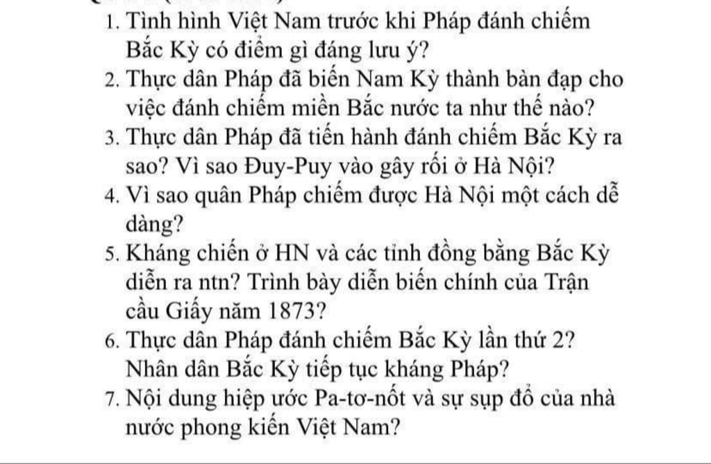 - Ngày 25 - 4 - 1882. quân Pháp nổ súng đánh chiếm thành Hà Nội, rồi mở rộng đánh chiếm ra các tỉnh thuộc Bắc Kì