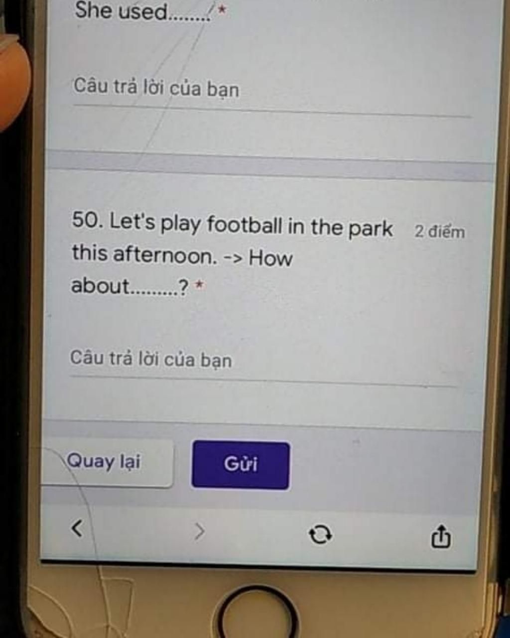 How about playing football in the park this afternoon? công thức : How about + NP/ N/ V.ing