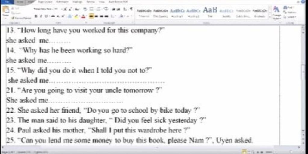 25, Uyen asked if I could lend her some money to buy that book (this ⇒ that trong câu gt)