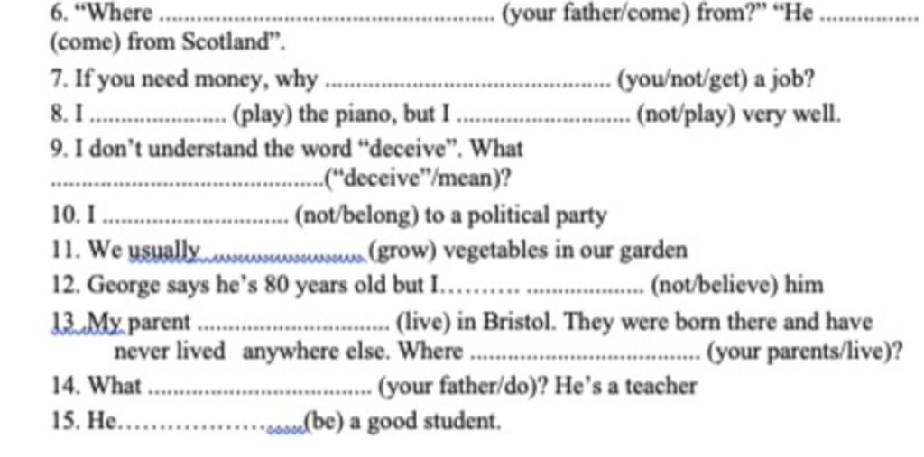 13. My parents live in Bristol. They were born there and have never lived anywhere else. What do your parents live?