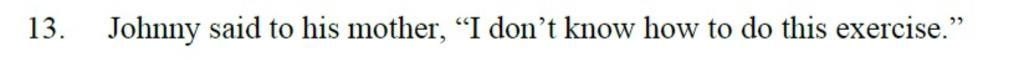 13. Johnny said to his mother, " l don't know how to do this exercise."