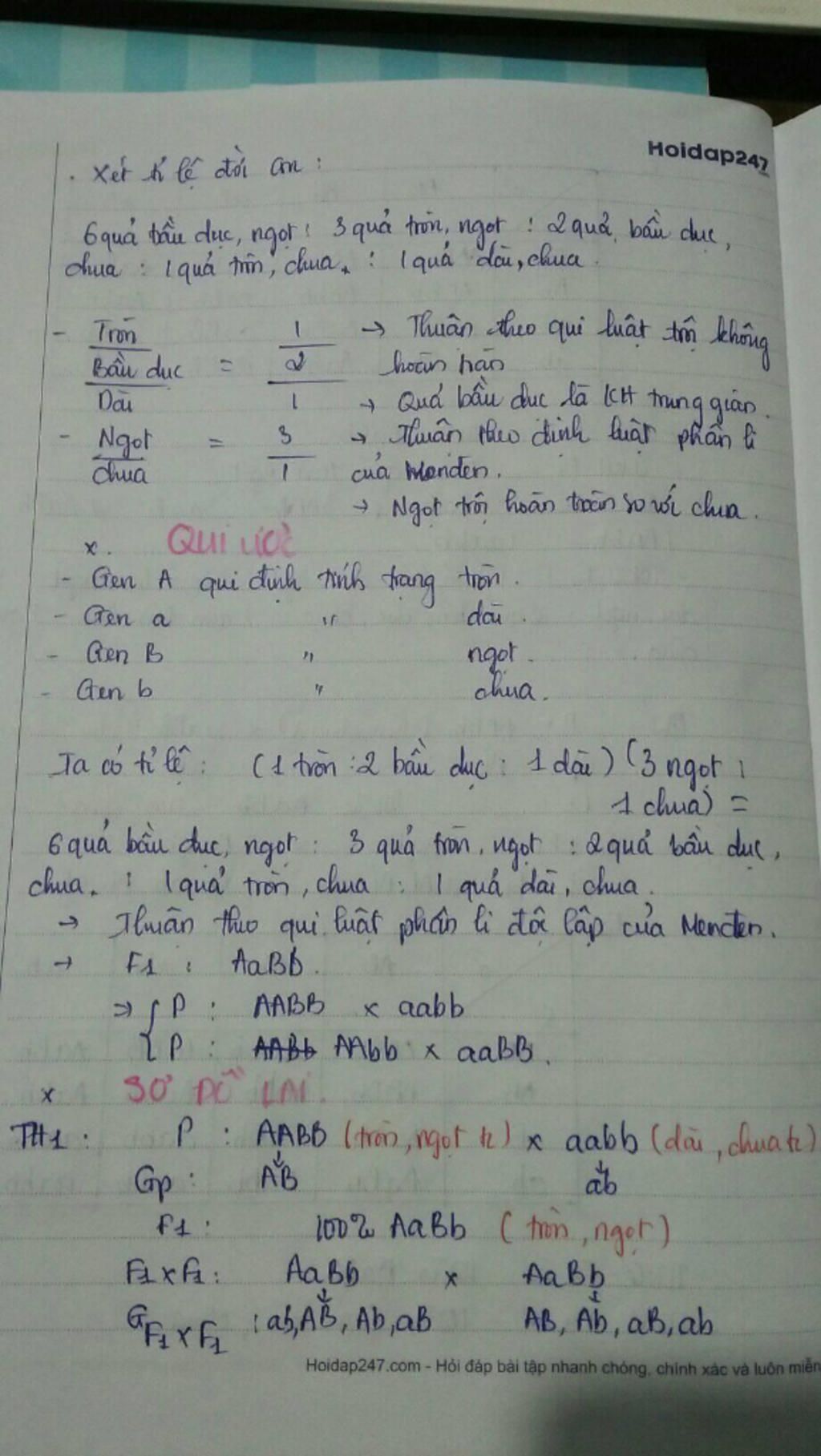 Ngọt: CHua$=12:4=3:1$ ⇒$P:Bb×Bb$, ngọt trội hoàn toàn so với chua