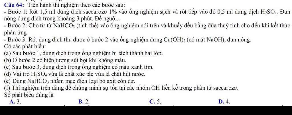 (f)Sai vì 2 phản ứng đầu là Thủy Phân; Trung Hòa còn phản ứng thứ 3 là phản ứng oxy hóa chứ không phải là phản ứng của rượu đa (như câu (c))