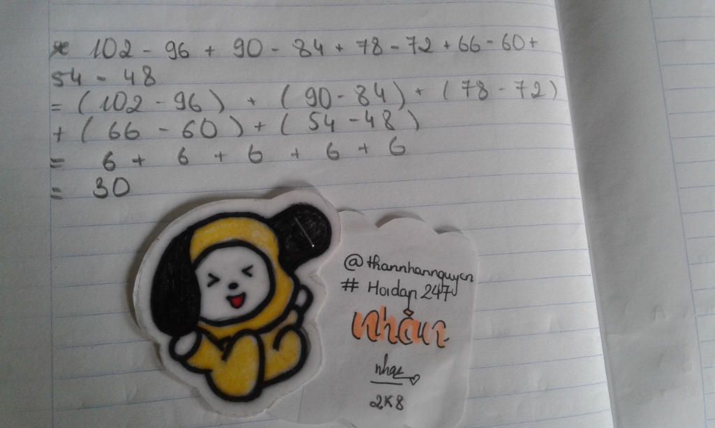`102 - 96 + 90 - 84 + 78 - 72 + 66 - 60 + 54 - 48`