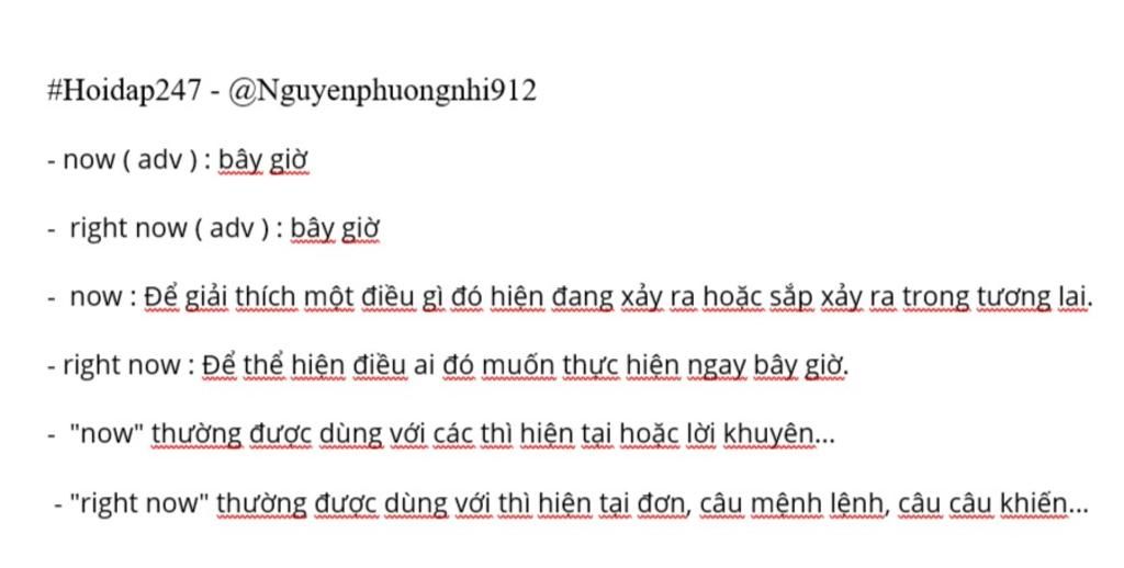 ⇒"right now" thường được dùng với thì hiện tại đơn, câu mệnh lệnh, câu yêu cầu...