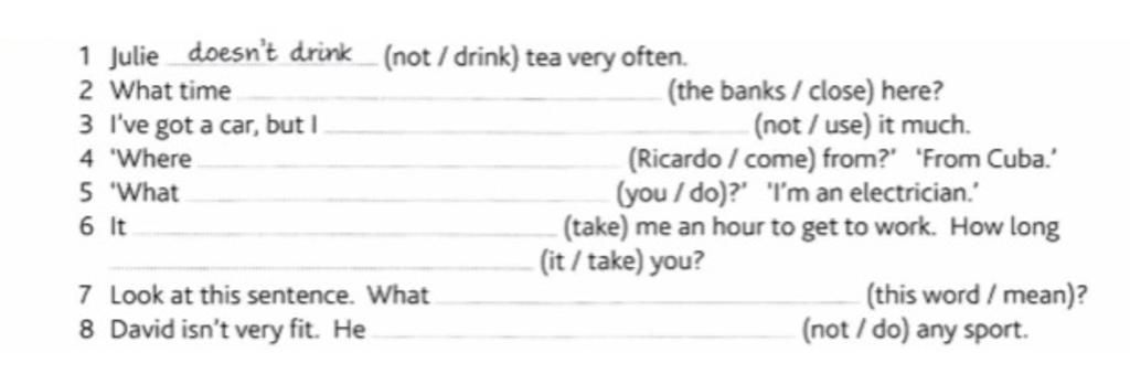 -> Chủ ngữ là số ít : he , she , it + V(s-es ) ; doesn't