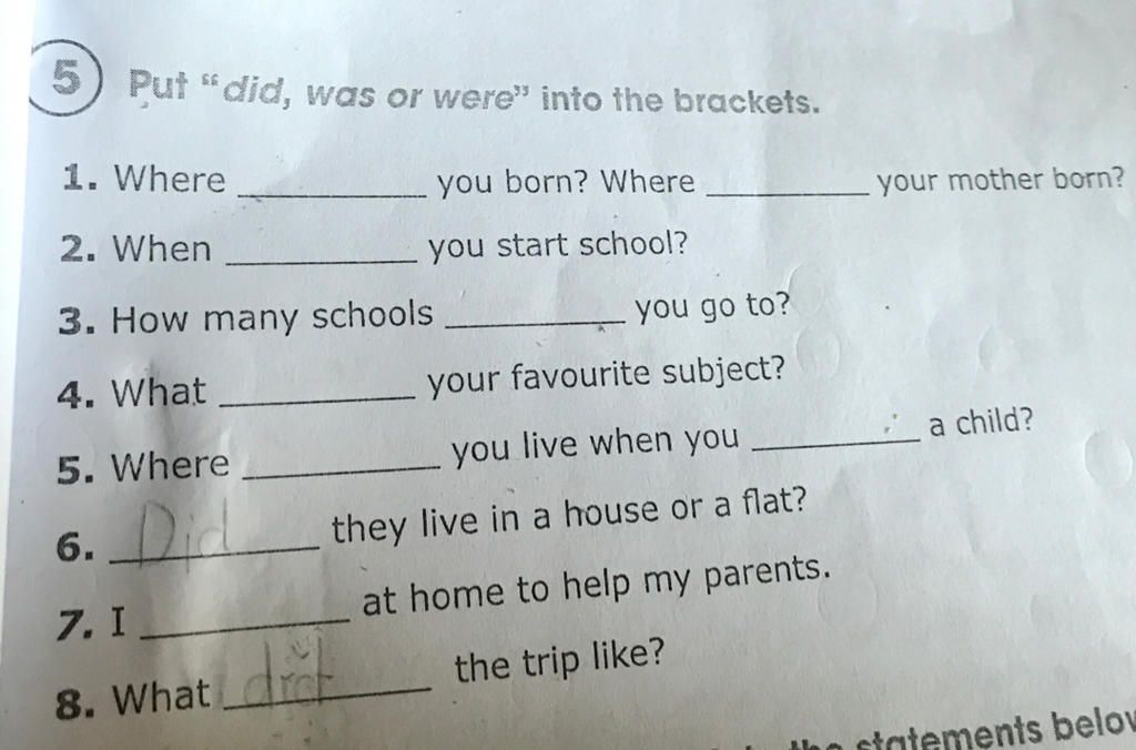 5.Where were you live when you was a child(giải thích ở câu 1)
