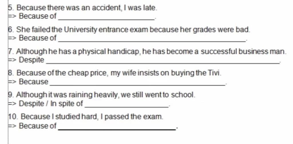 `6.` Because of her grades were bad, she failed the University entrance exam