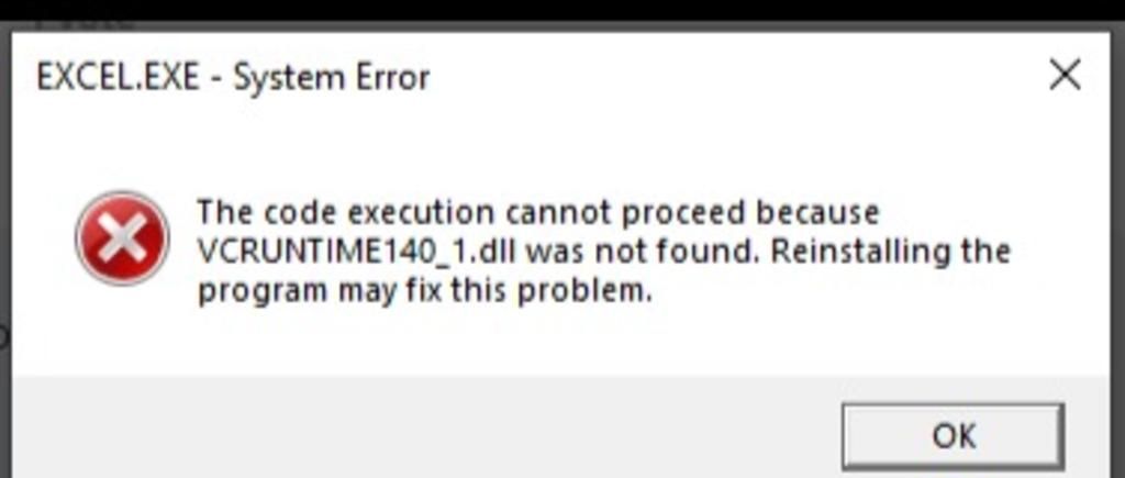 - Đây là lỗi xuất hiện khi hệ thống không tìm thấy tệp tin VCRUNTIME140_1.dll -một tệp tin hỗ trợ cho chương trình Office.