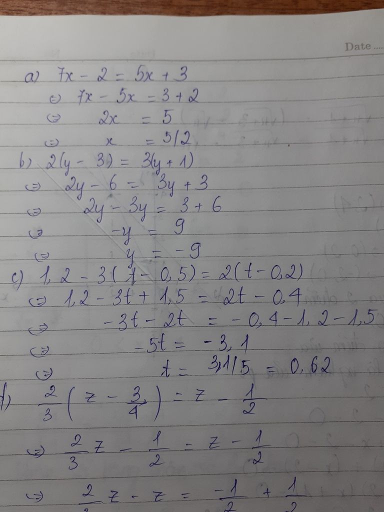 d, $\frac{2}{3}.(z-\frac{3}{4})= z-0,5$