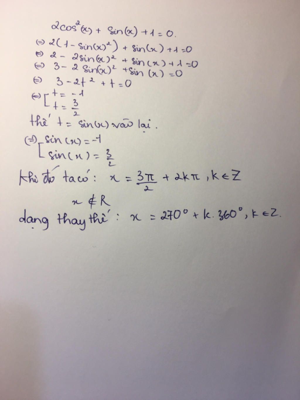 \Leftrightarrow 2(1 - 2\sin^2x) + \sin x - 1 =0\\
