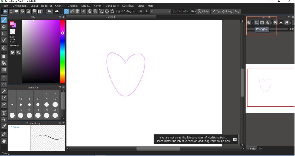 Nhấn Ctrl `+` để phóng to tranh lên, nhấn Ctrl `-` để thu nhỏ tranh lại.