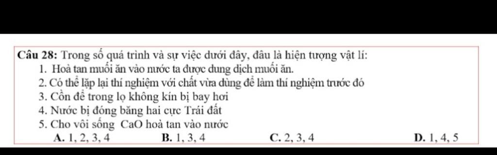 + Hiện tượng 3 là bay hơi thuộc tích chất vật lý.