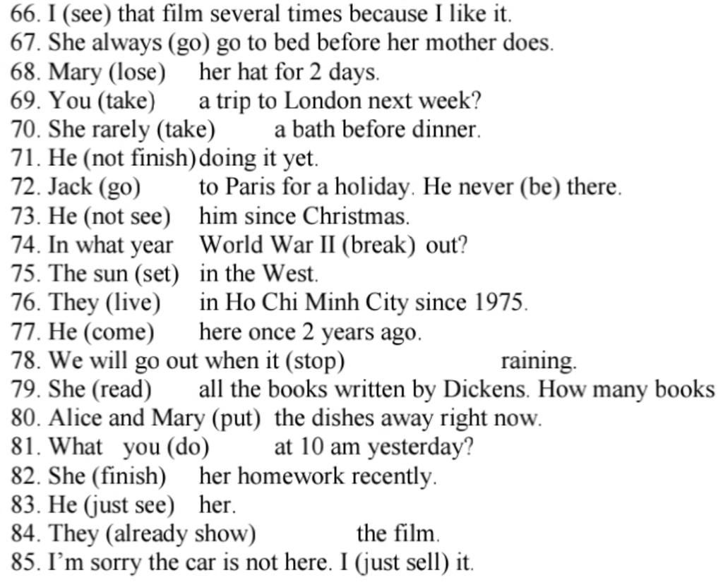 6....hasn't finished...(=>Thì hiện tại hoàn thành:S+have/has+Ved/V3,dấu hiệu:yet)