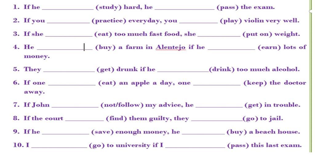 1.If he studies hard, he will pass the exam