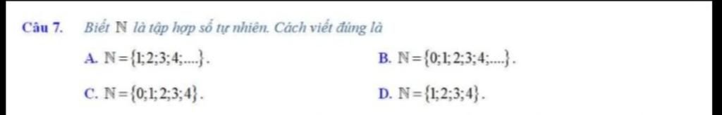 Cách viết đúng là tập hợp các số tự nhiên bắt đầu `0` trở lên