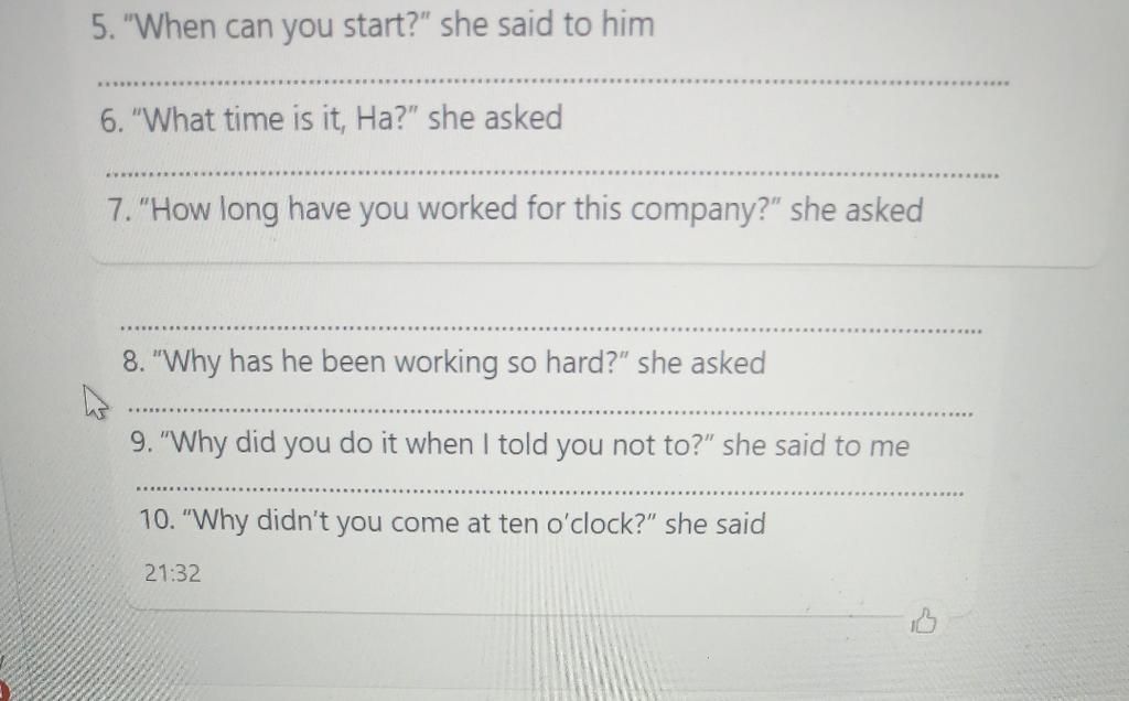 `10` She asked me why I hadn't come at ten o'clock