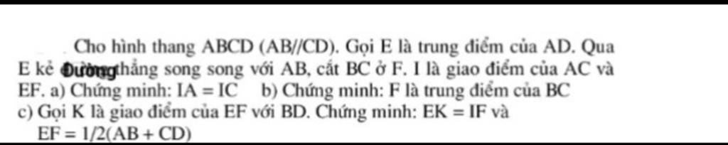 `⇒EF` là đường trung bình của hình thang `ABCD`